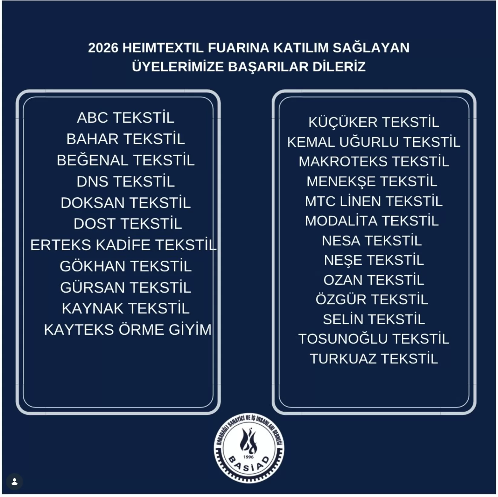2026 Heimtextil Fuarına katılan üyelerimize başarılar dileriz.